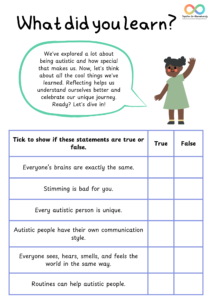 Our aim is to support positive autistic identity, build confidence, and help children feel seen, understood, and accepted — just as they are.