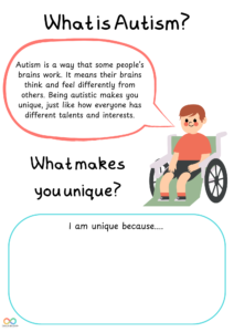 Through gentle activities, visuals, and prompts, the book encourages self-exploration without pressure — recognising that every autistic child is unique, and that there is no “right” way to engage.