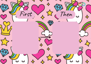 First/Then: Helps motivate by showing that after completing the first task, a preferred activity or reward will follow. For example, First homework, then playtime.