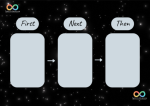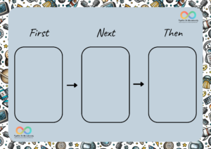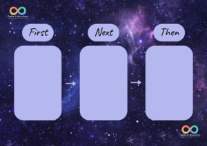 First/Next/Then: Offers a bit more structure by introducing a third step, useful when planning a slightly longer sequence of activities.