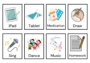 • First/Then: Use this wording to emphasise the sequence of events, especially when motivating the individual to complete a task before moving on to something more desirable.