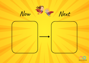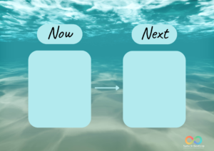 Now/Next boards can be customised with visuals, pictures, or written words, depending on what works best for the individual. It’s important to place the board somewhere visible, and review it regularly to build familiarity with the routine.